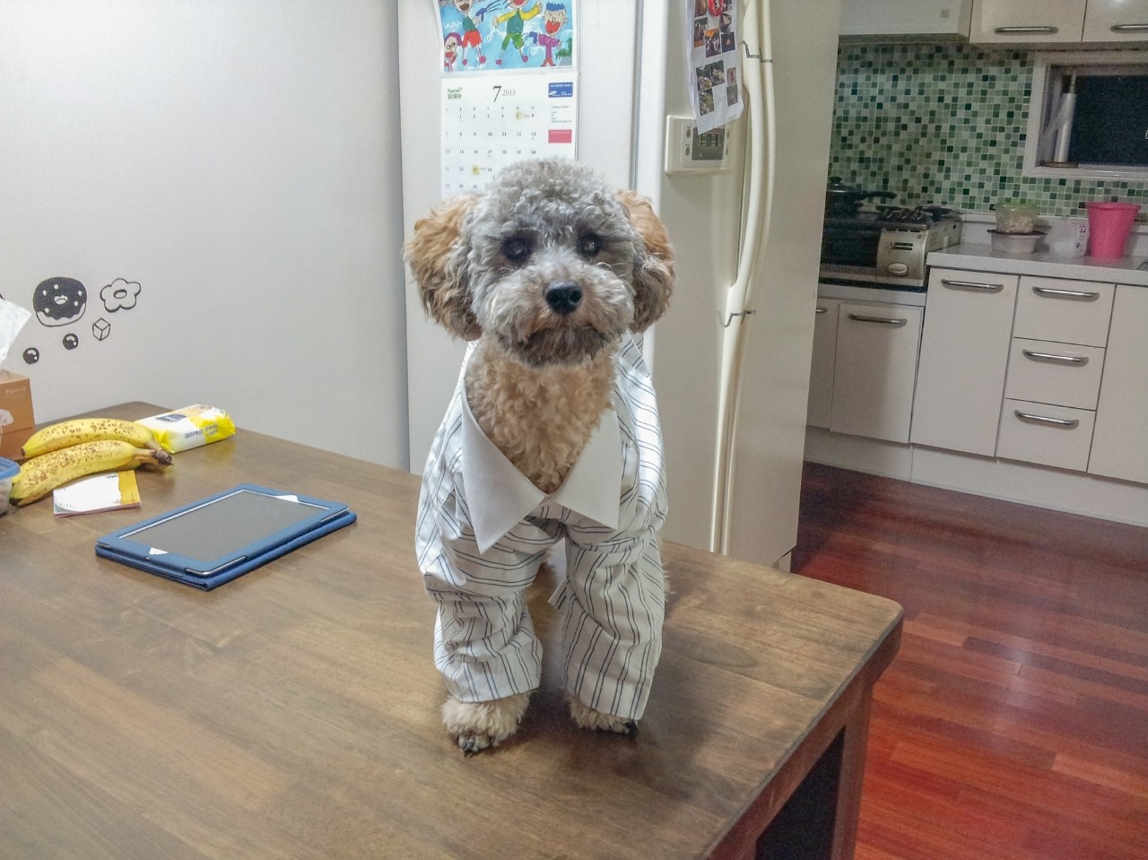 飼い主でpapaのブレインのテーヨン氏の半袖のワイシャツ着てーの。。