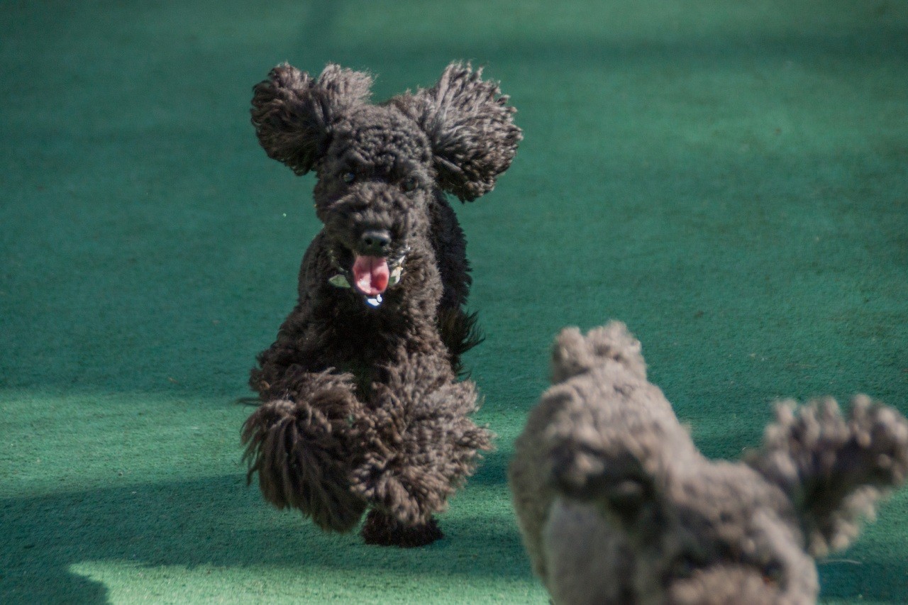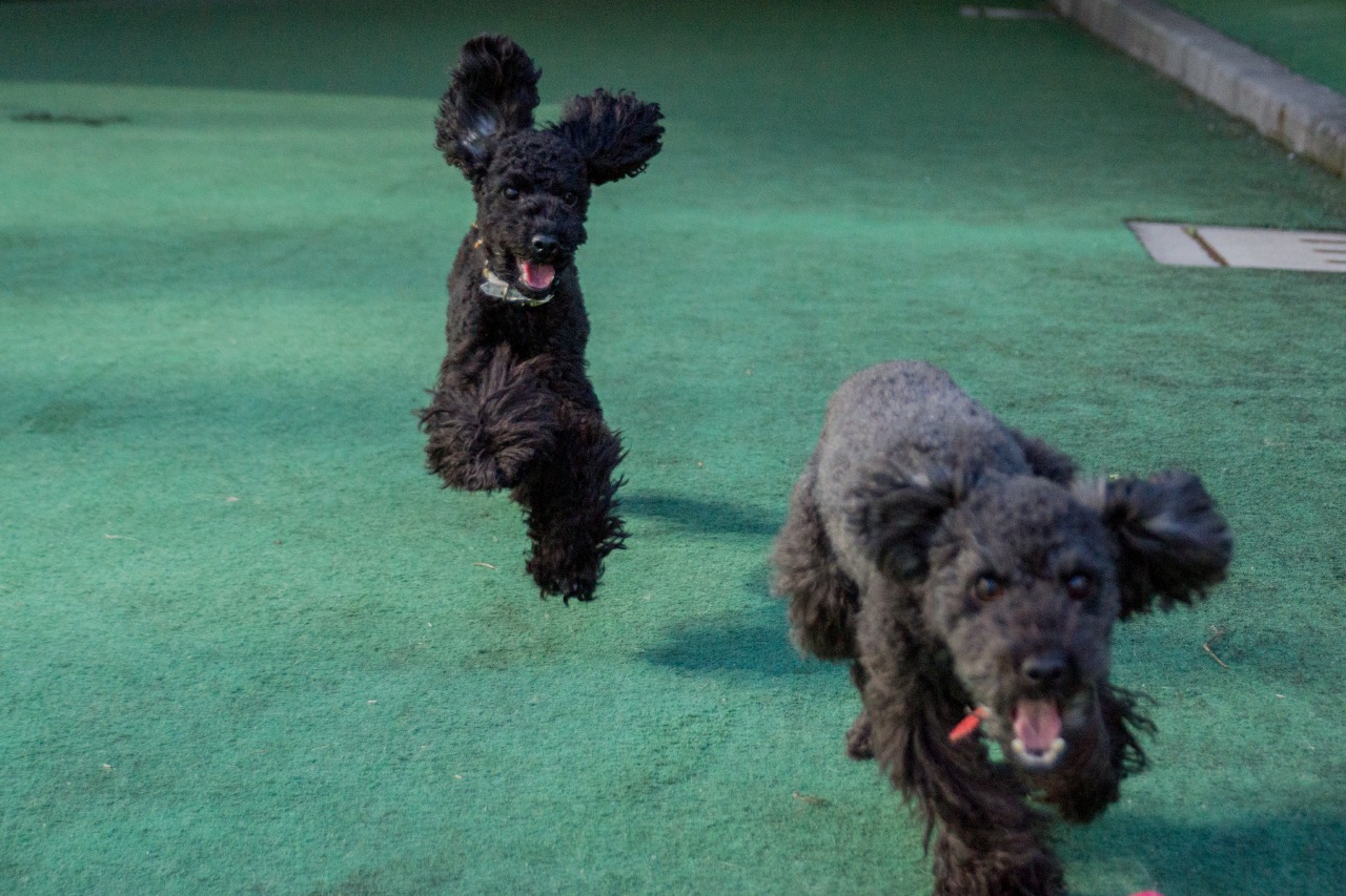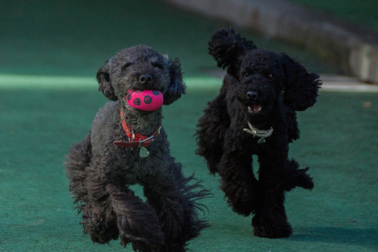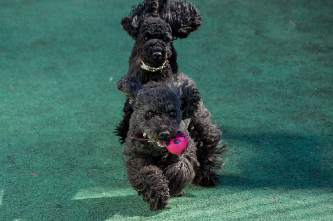 ボールに向かって走り回っている母リリーにひっついて追い走りするのが楽しいご様子。。