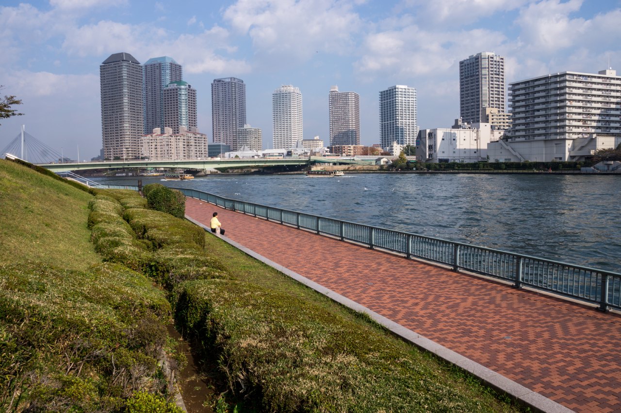 隅田川テラスに下りーの。。トコトコスタスタ歩きーの。。