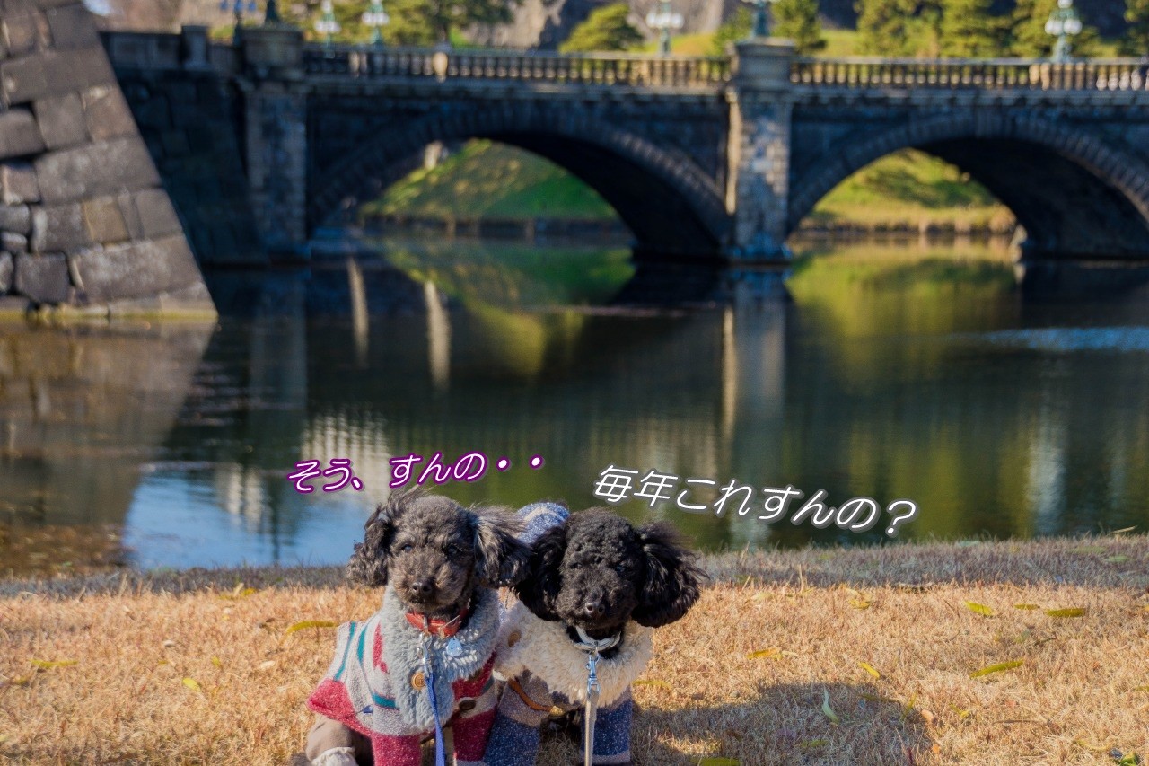 新年を生後3ヶ月程度の時から皇居巡りで育ってきたリリーは5歳だぉ。。