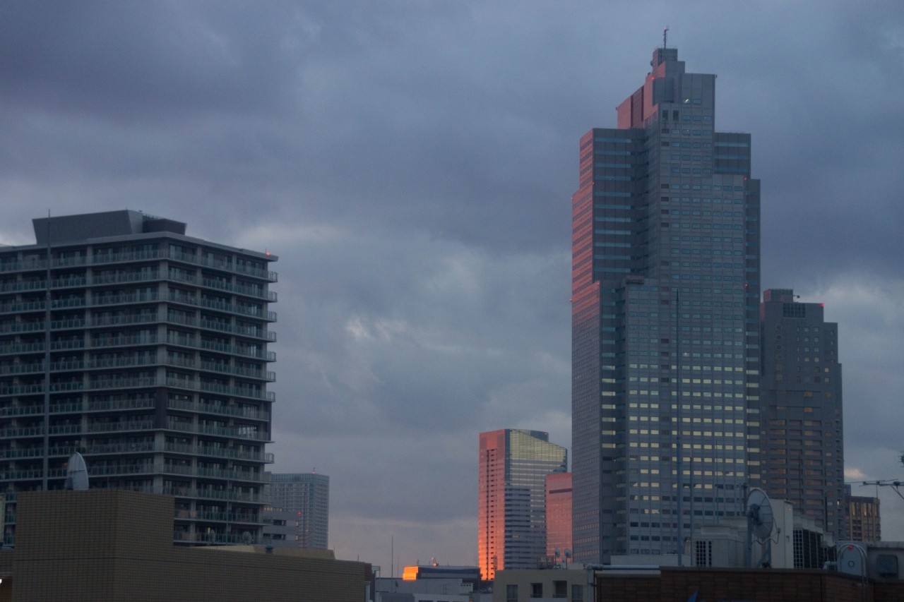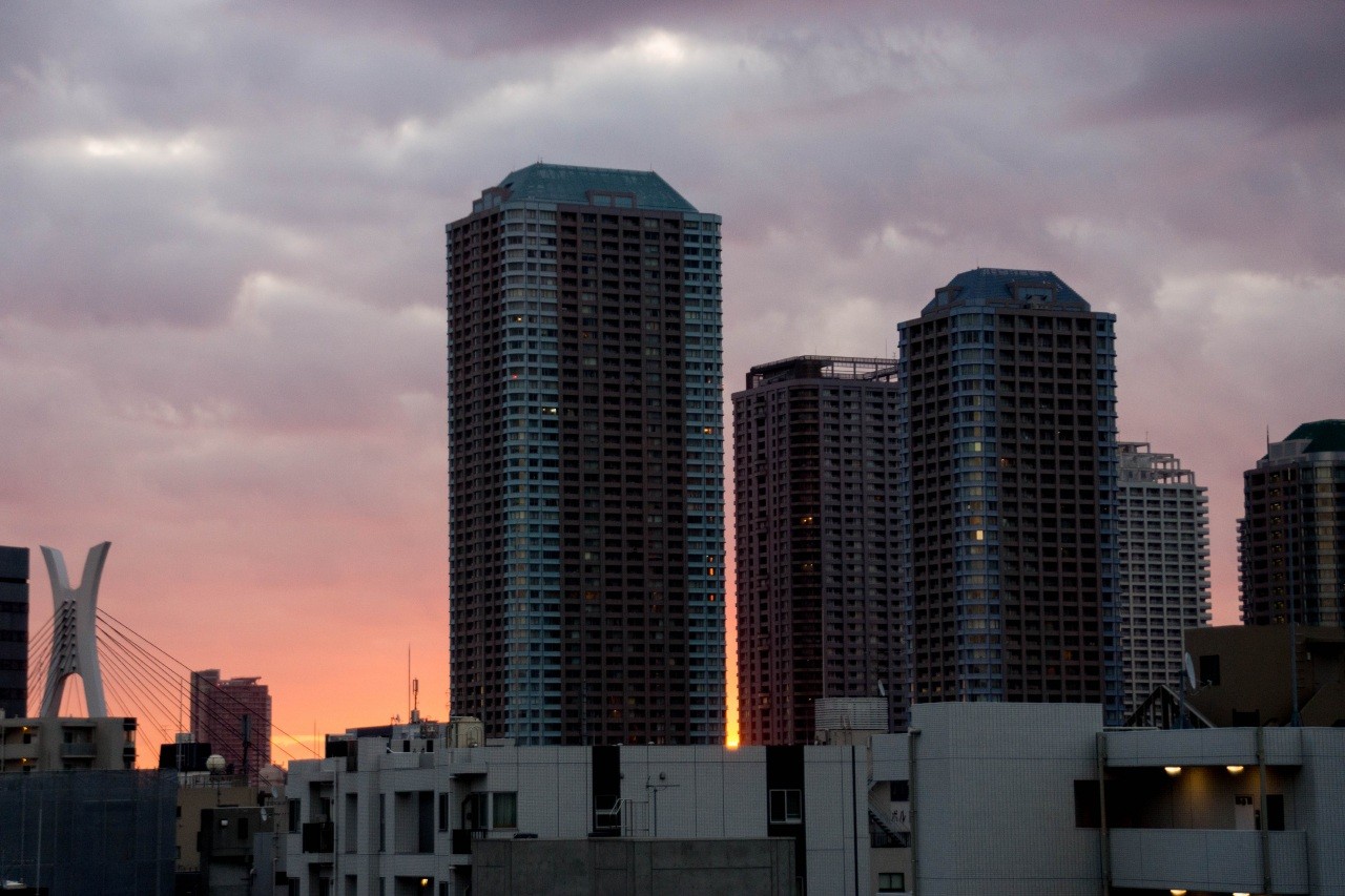 我が家から見える川向こうのリバーシティのタワーマンションの隙間から・・・・。