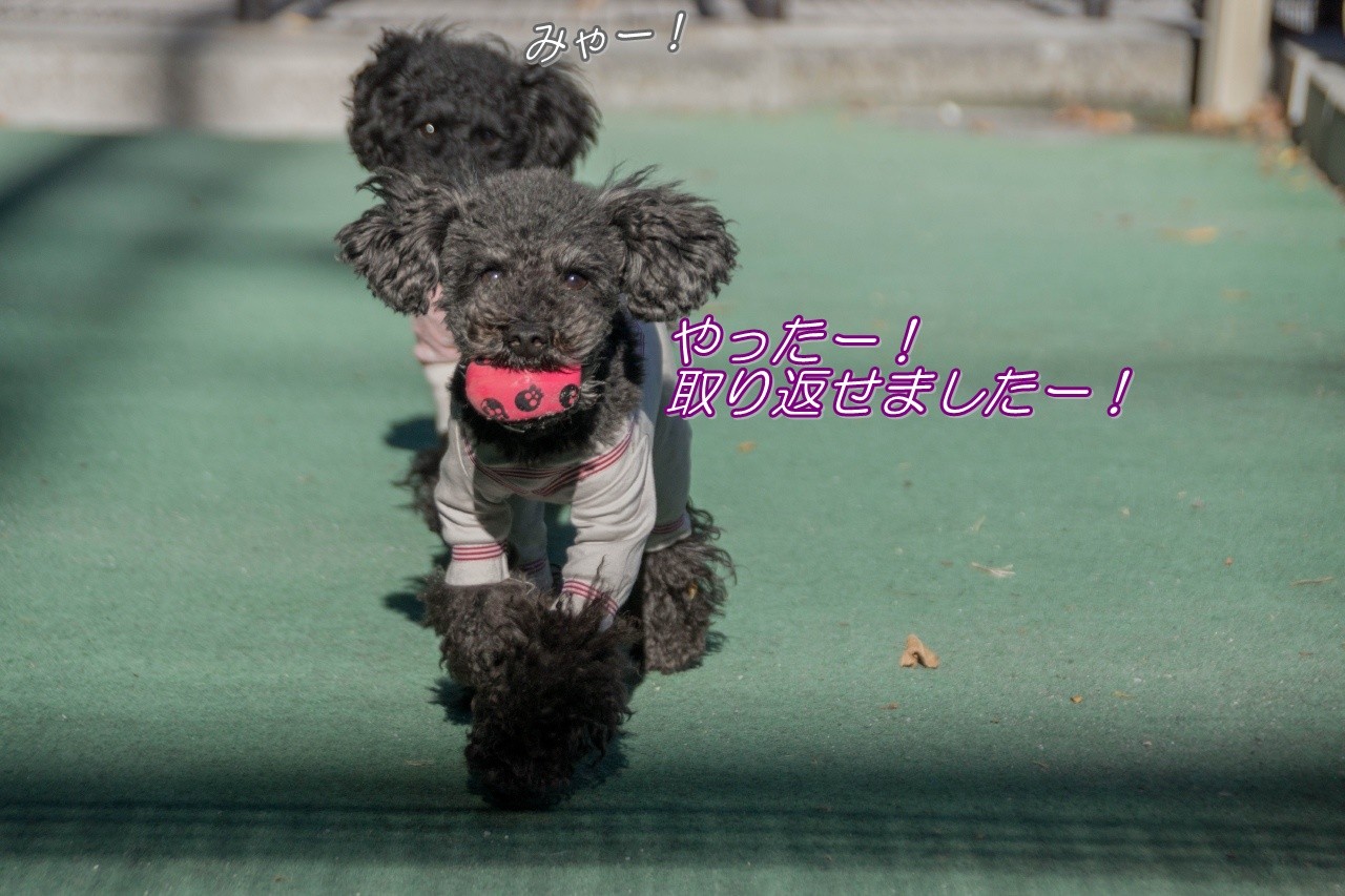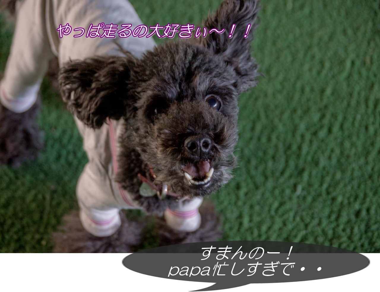 このリズムに戻れば、ドナはおもちゃめがけて走り、咥えてpapaの手元に戻ってくる・・・な暴走母と一緒に目一杯走り回るー。