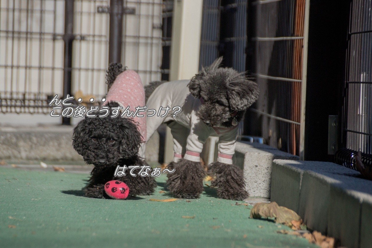 ドッグラン内の唯一の陽向を使っておもしろ楽しく激しく遊びまくるのですぉー。。