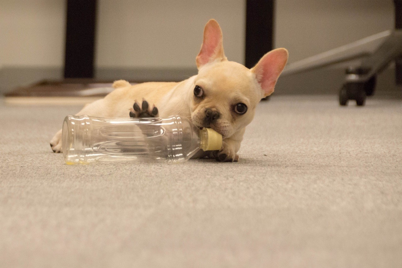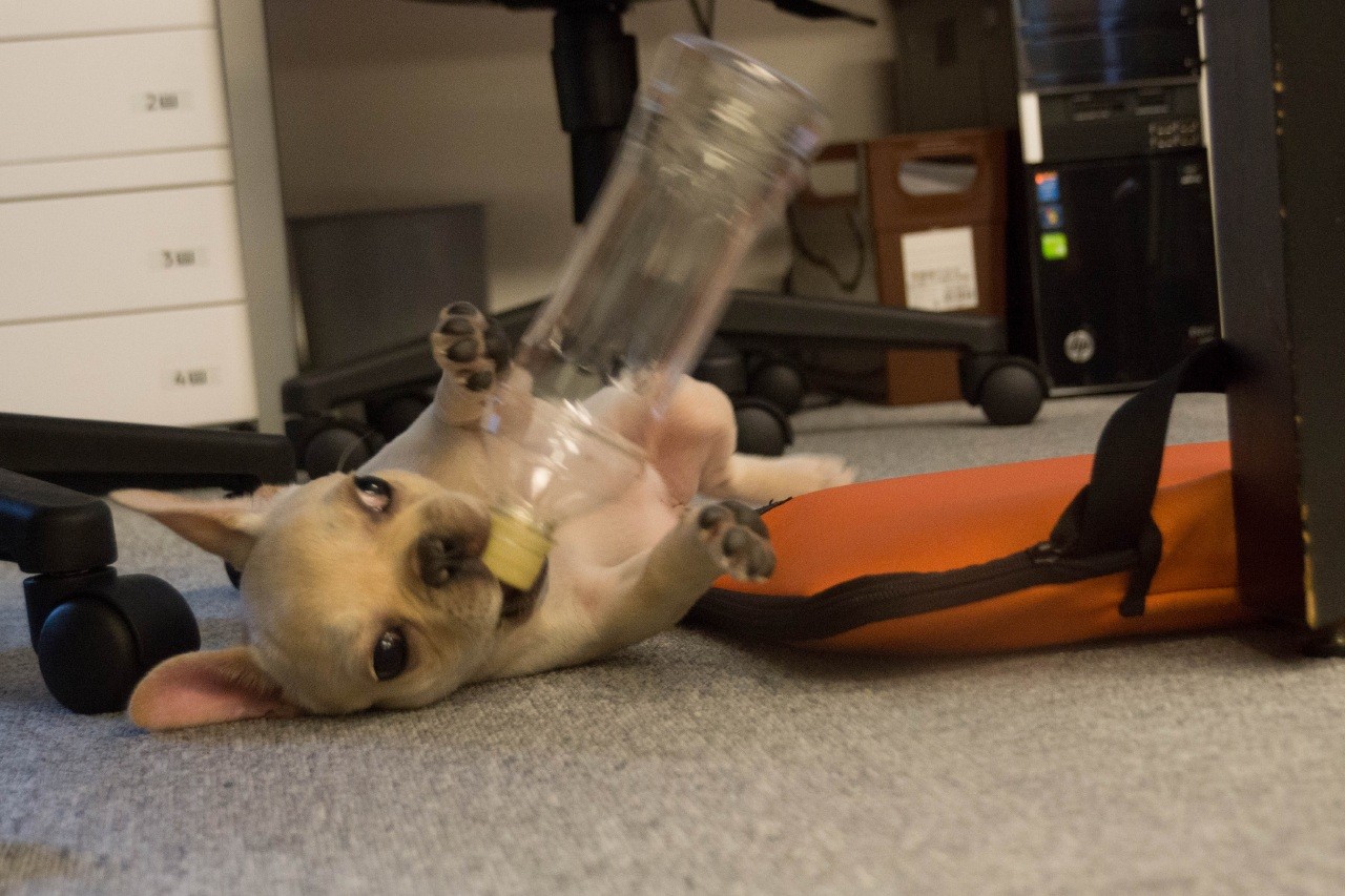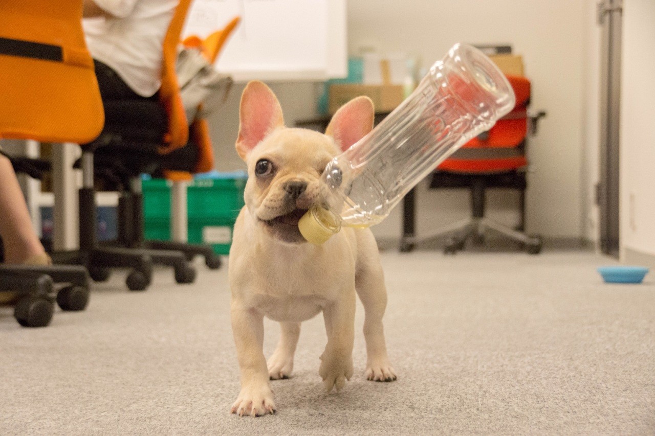 独り、オフィス内をこうやってペットボトル咥えたまんま走りまわりぃ~の。。