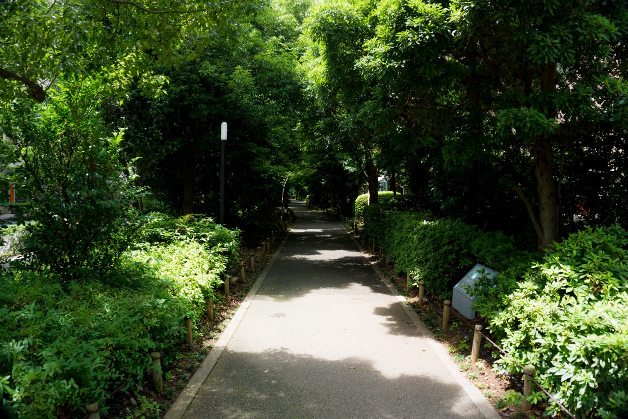 路面が熱いから病院脇のこの木陰道を歩くです。。
