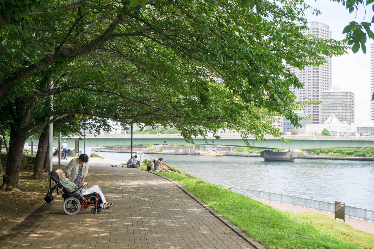 春には桜がたくさんの築地川公園。