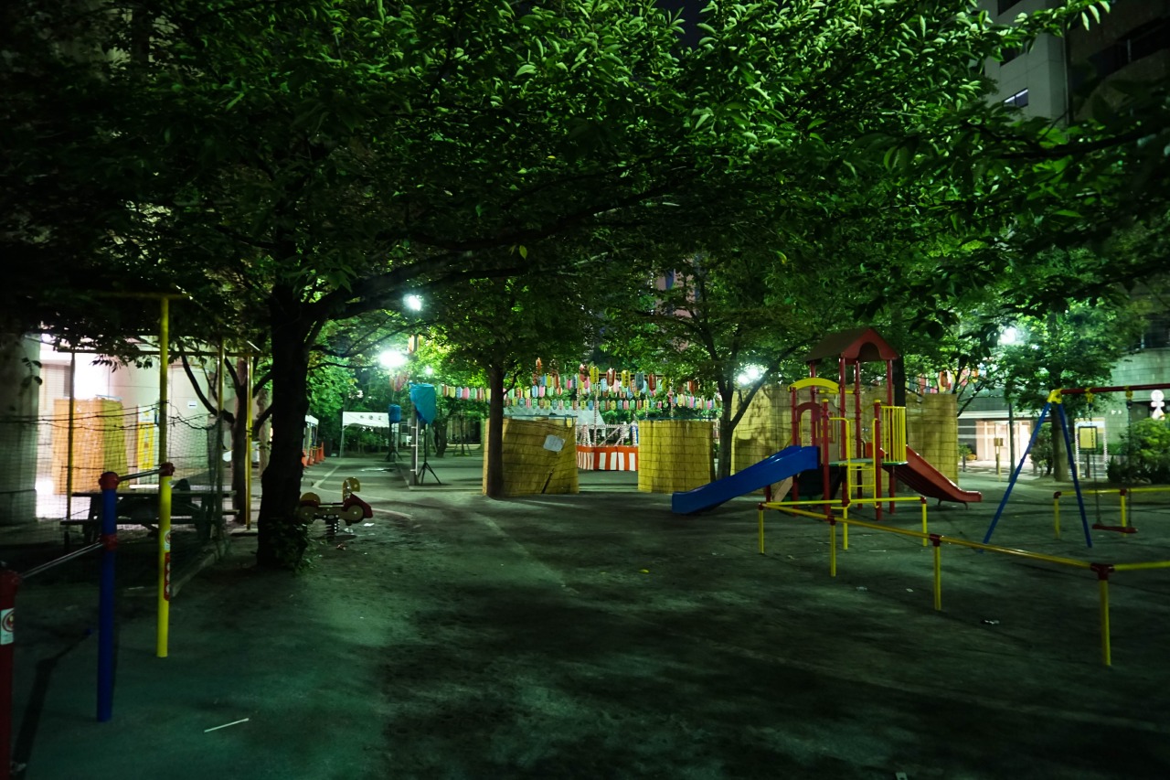 さっきまで夏祭りだった京橋公園もこの時間はシィ~ンとしてます。