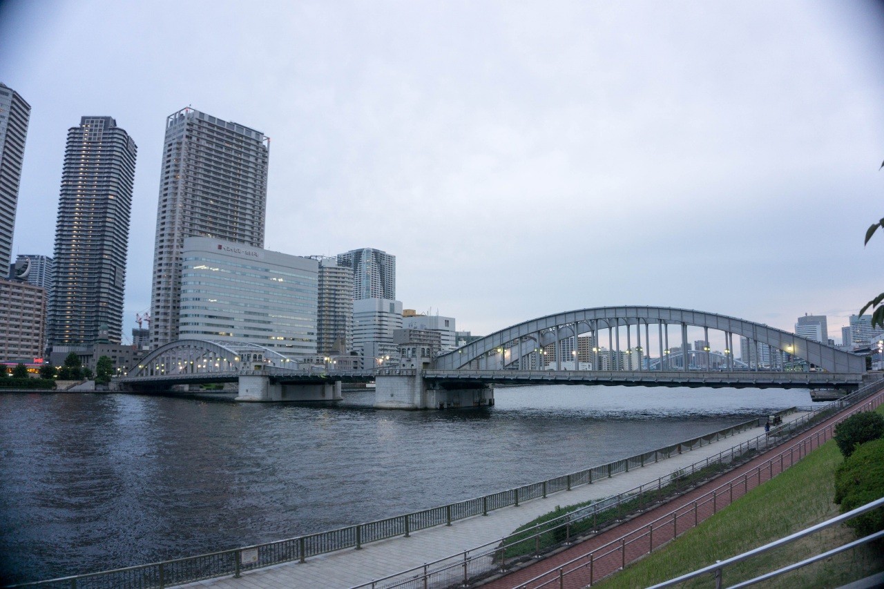 今日の勝ち鬨橋通過はネオンなしタイムだじぇー。。