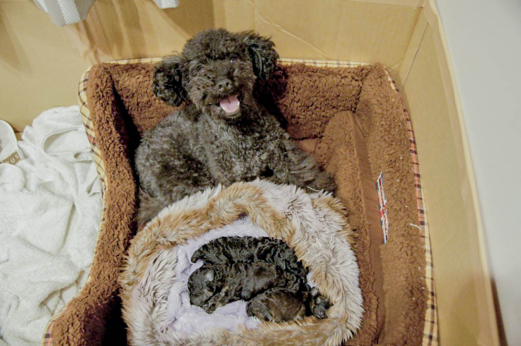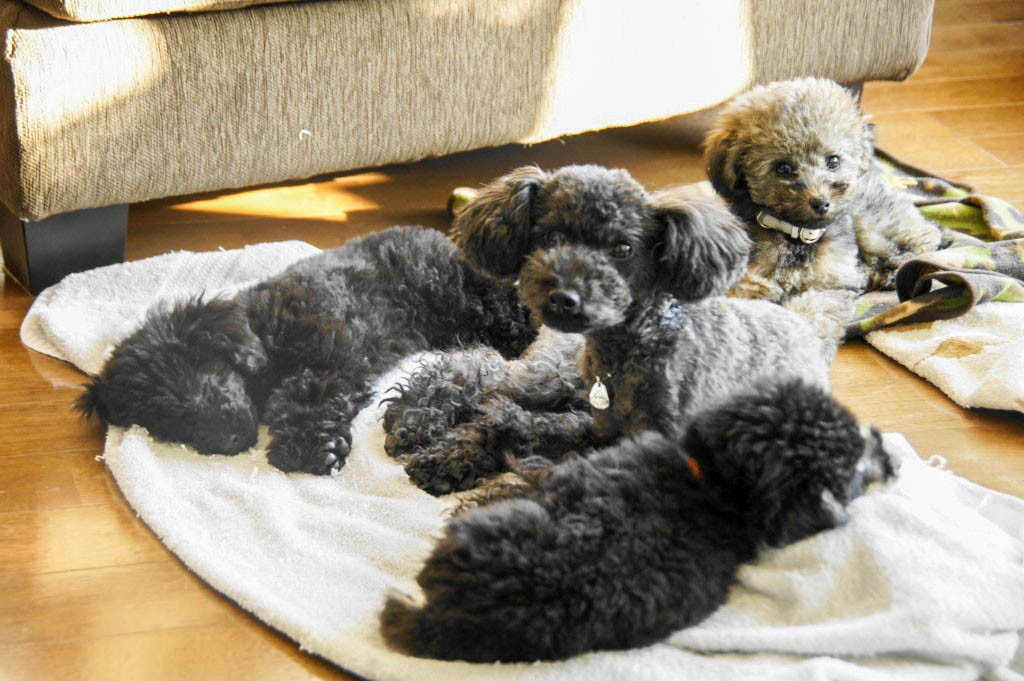 親子4人でくつろいで。リリーにいろいろ教わったパピー時代。