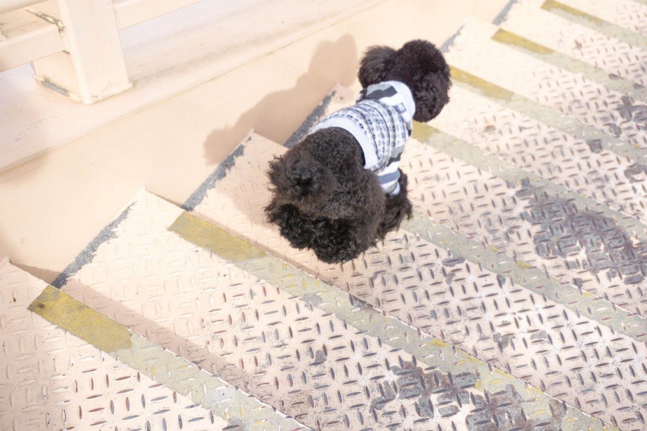 ドナの気分転換で、朝から近所を軽くお散歩に連れ出すことに。