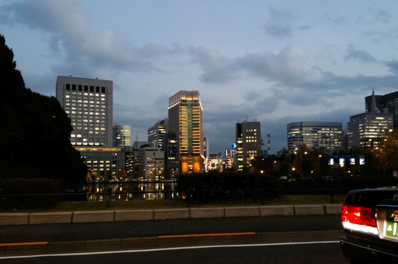 日没あたりの皇居お堀界隈から銀座を流し見しーの。。