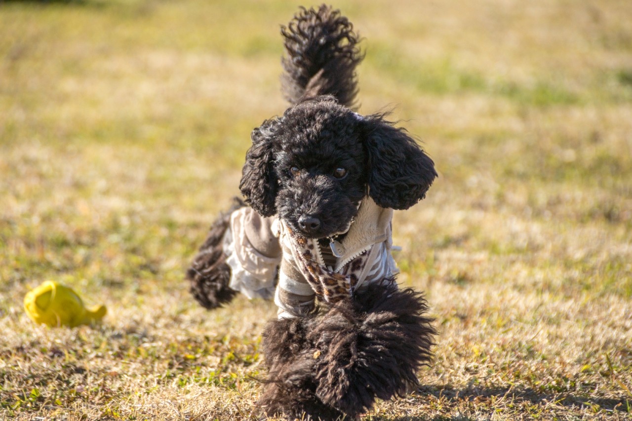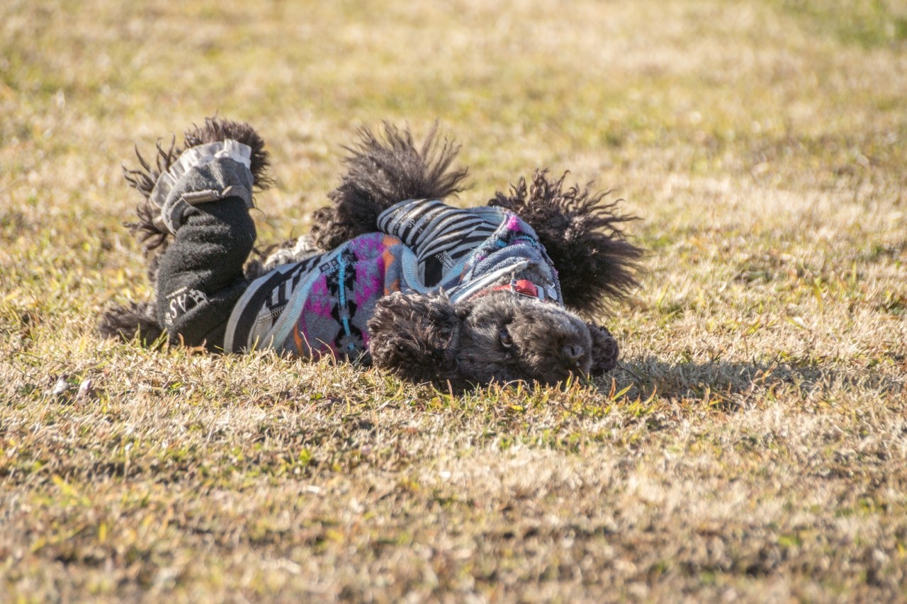 ドナは後ろ足で芝を掘り掘ぉ~りぃ。。