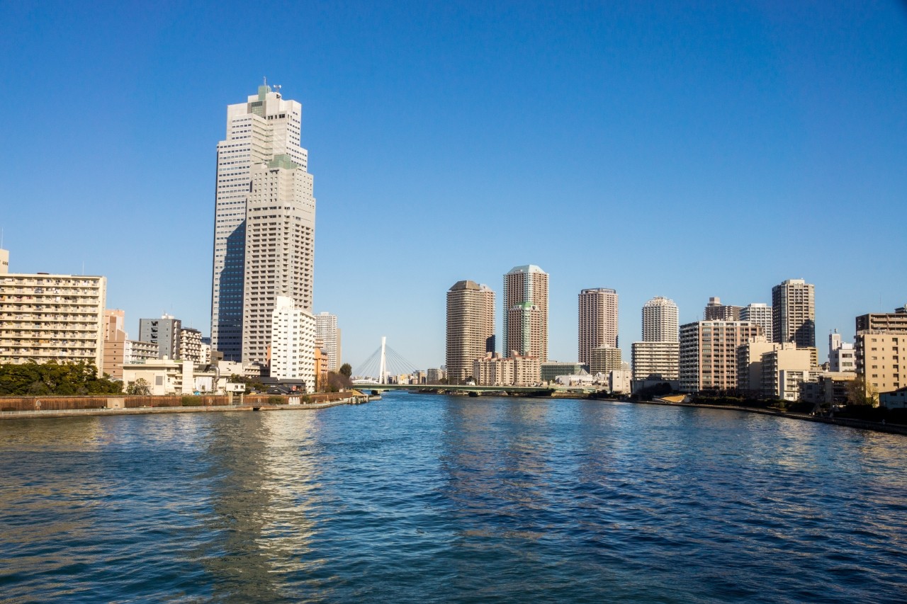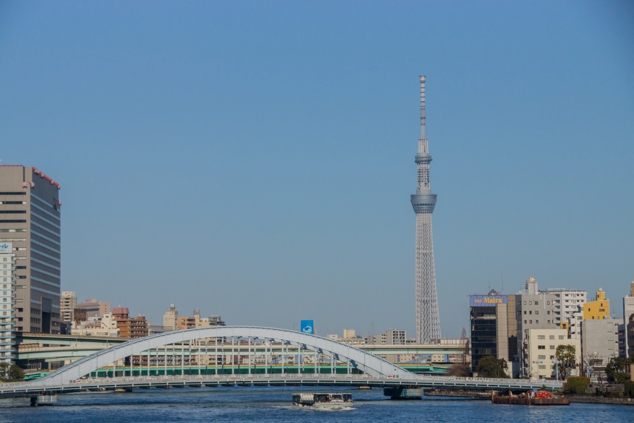 だもんで。中央大橋から見える東京スカイなツリーちゃまと遊覧船。。