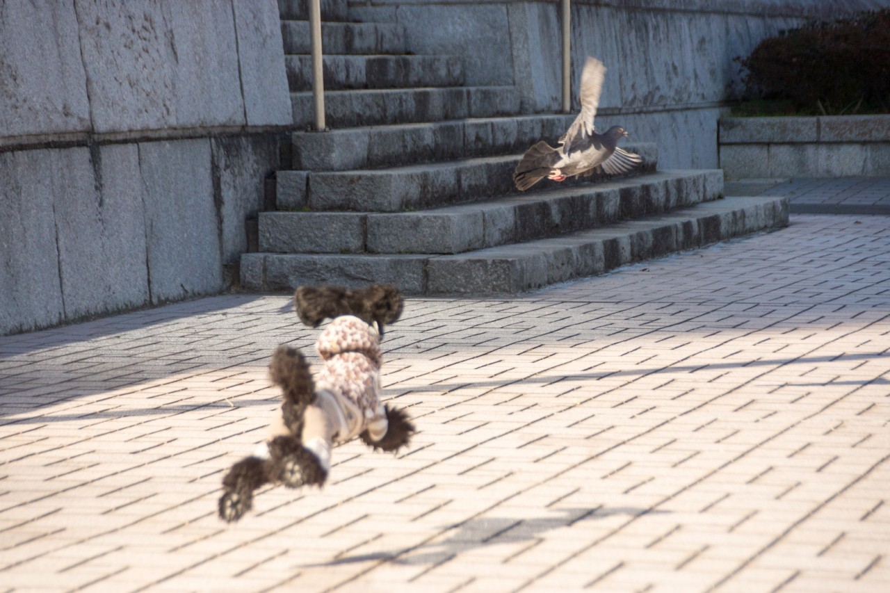 徹底して陽向を選んで歩いた今日のお散歩無事終了。。