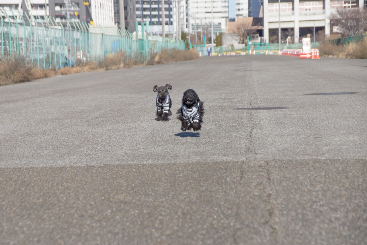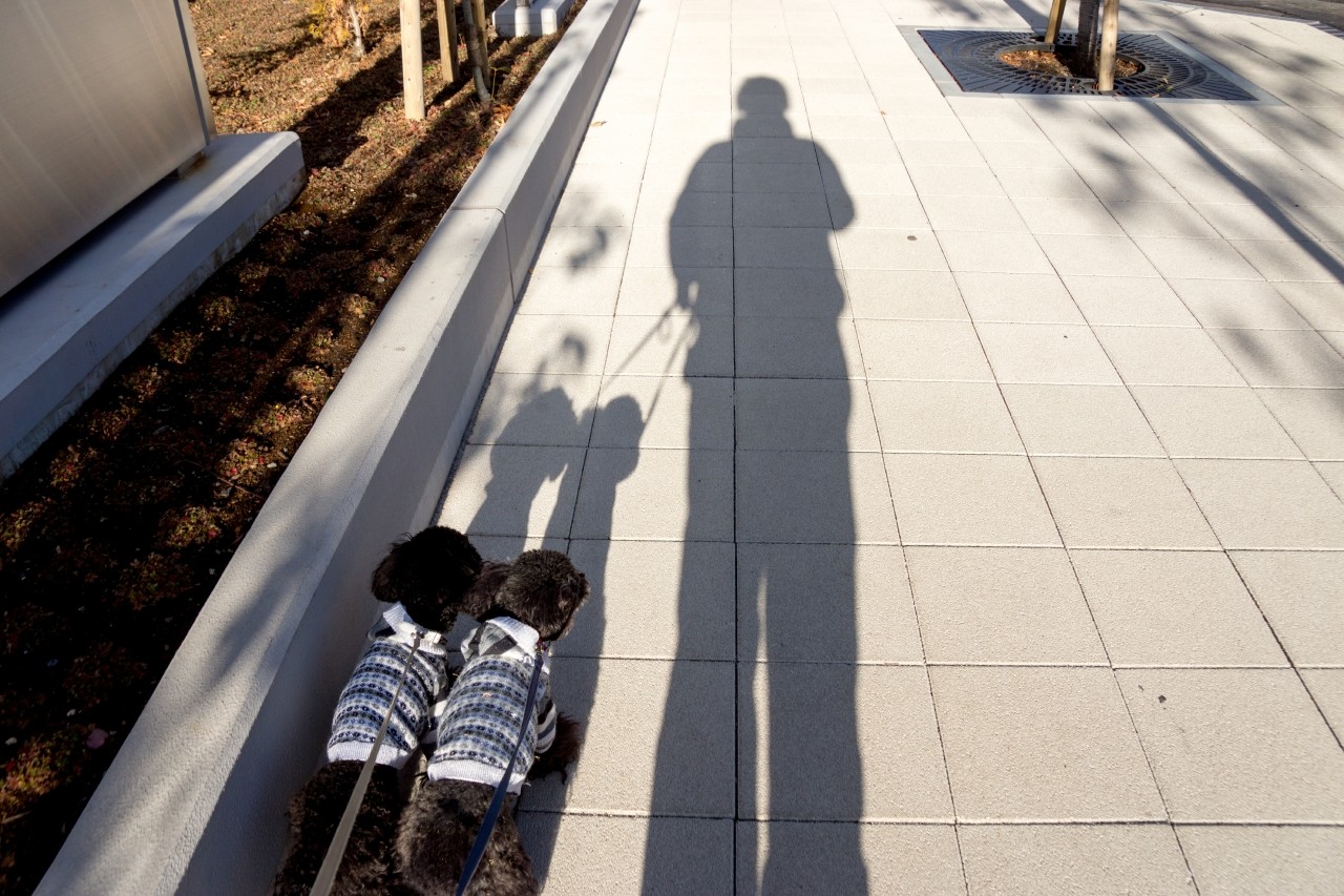こうやってお散歩してんだぜ。並んで。。毎日。。