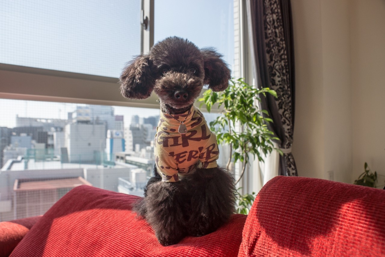 ドナはリリーみたいに転がりまくったりしないからワン服チョイスはこれでよし!見るからに女の子スタイルっす。。