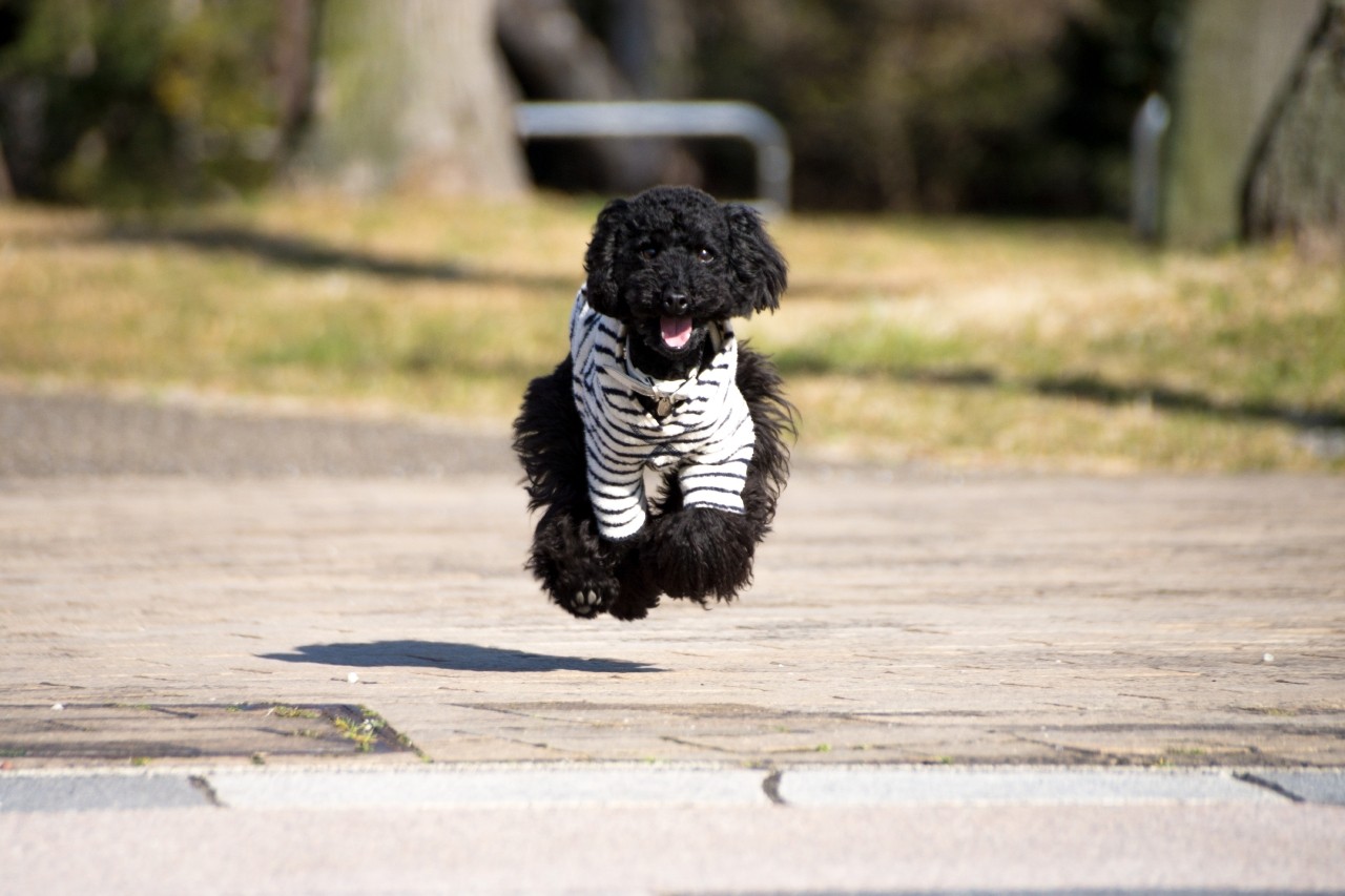 芝の広場ではノーリードなトイプーちゃんがボールで遊んでただけー!!