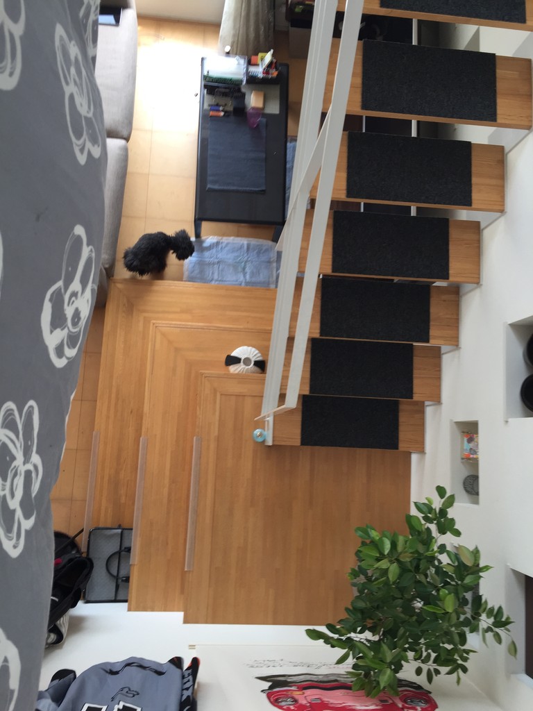 今さっき。papaを振り返りながら・・・興味を誘うがごとく1Fに下りてったリリー。