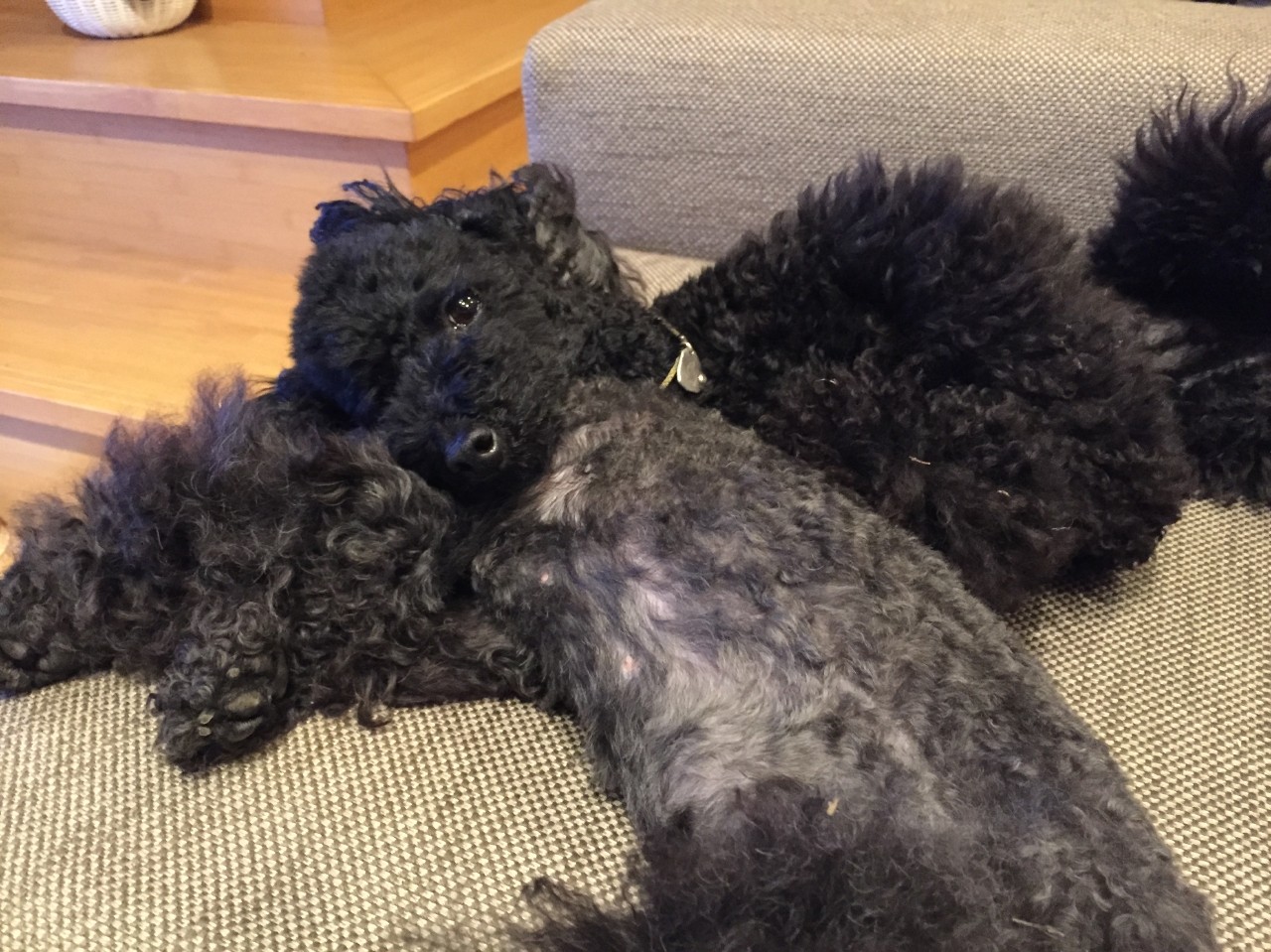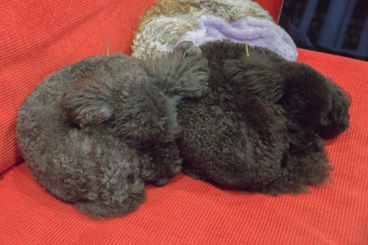 ドナがひっくり返って寝てるリリーの首筋を枕にして自らもひっくり返って寝てる図だぉ。。
