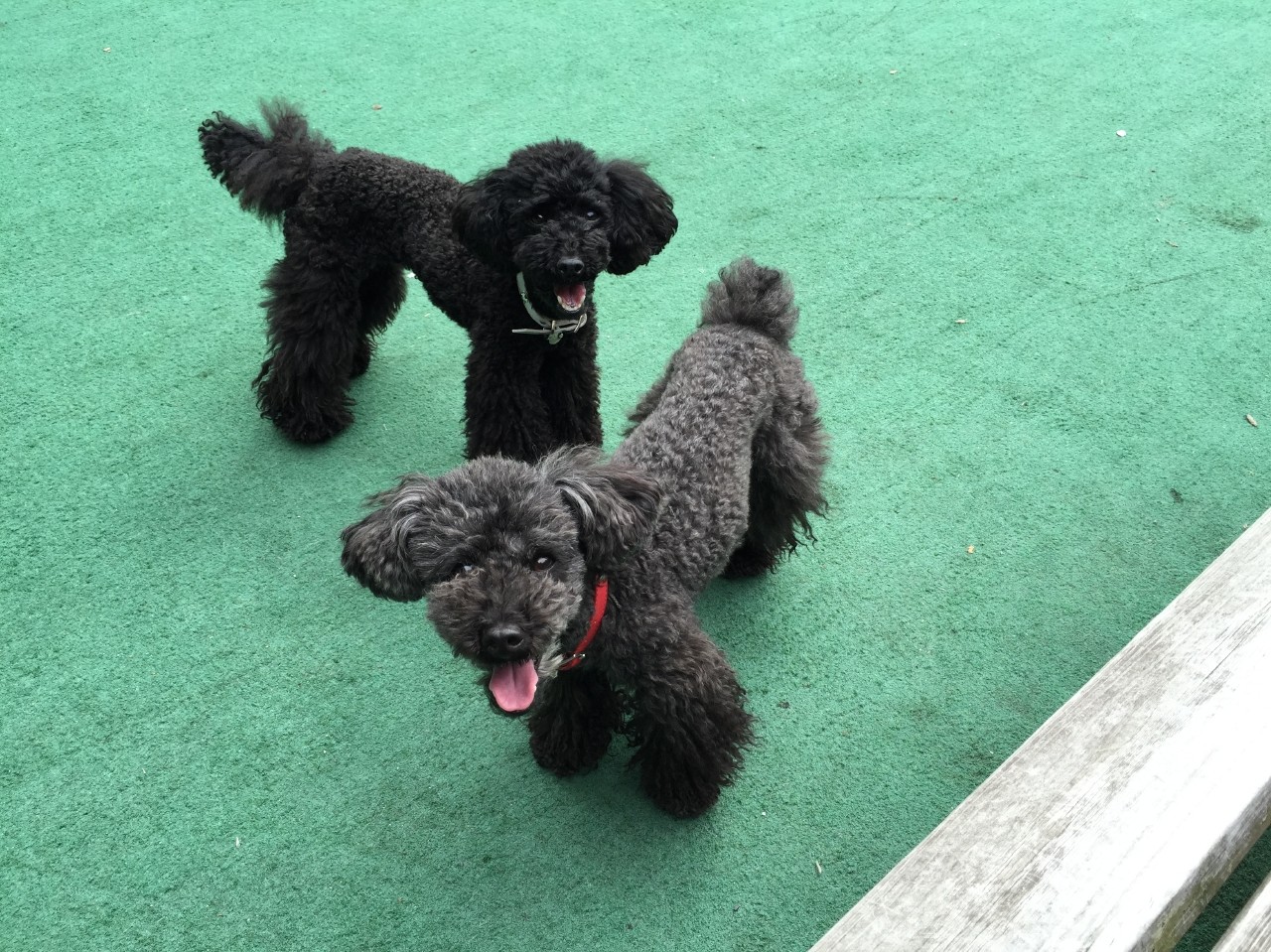 雨降る前にリリーとドナといつもの処な築地川公園わんわん広場で思いっきり走り溜めしておきます(笑)