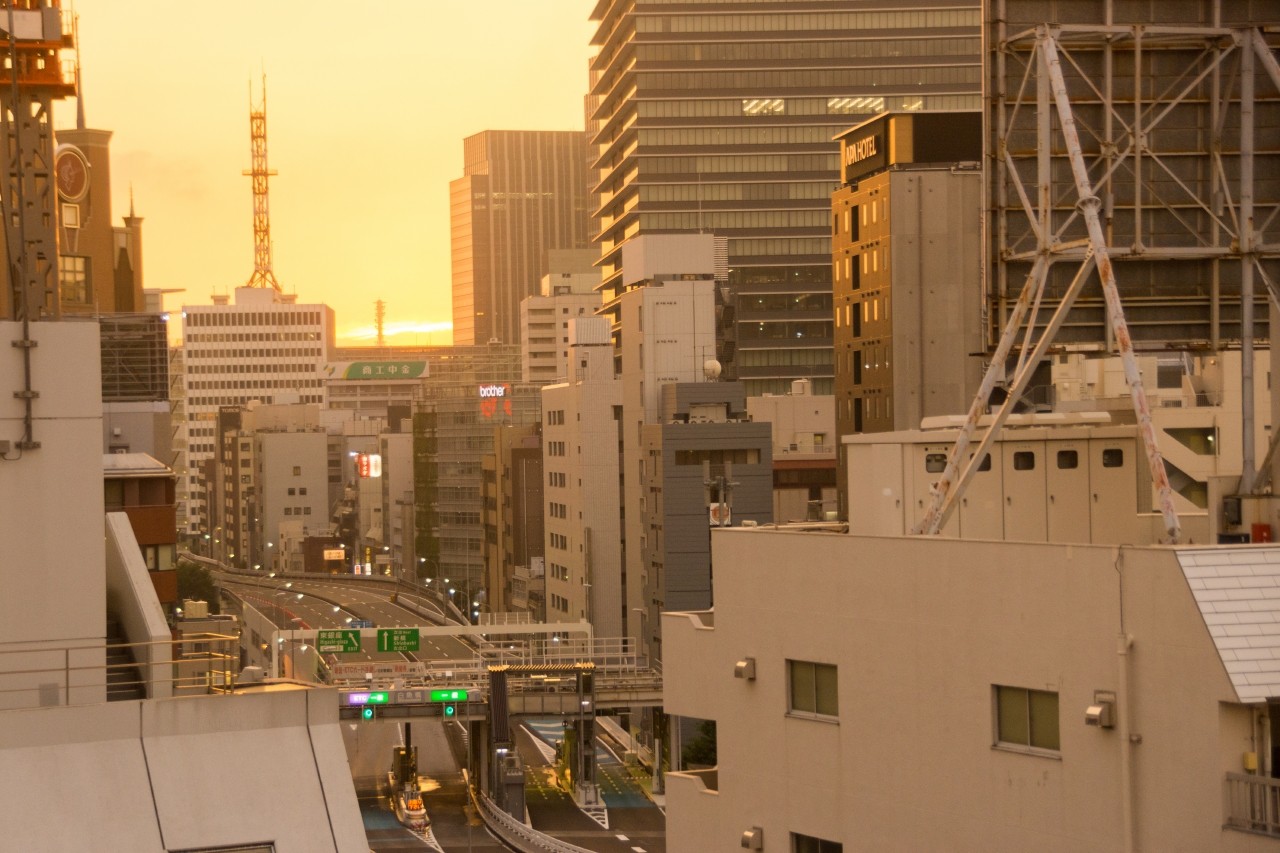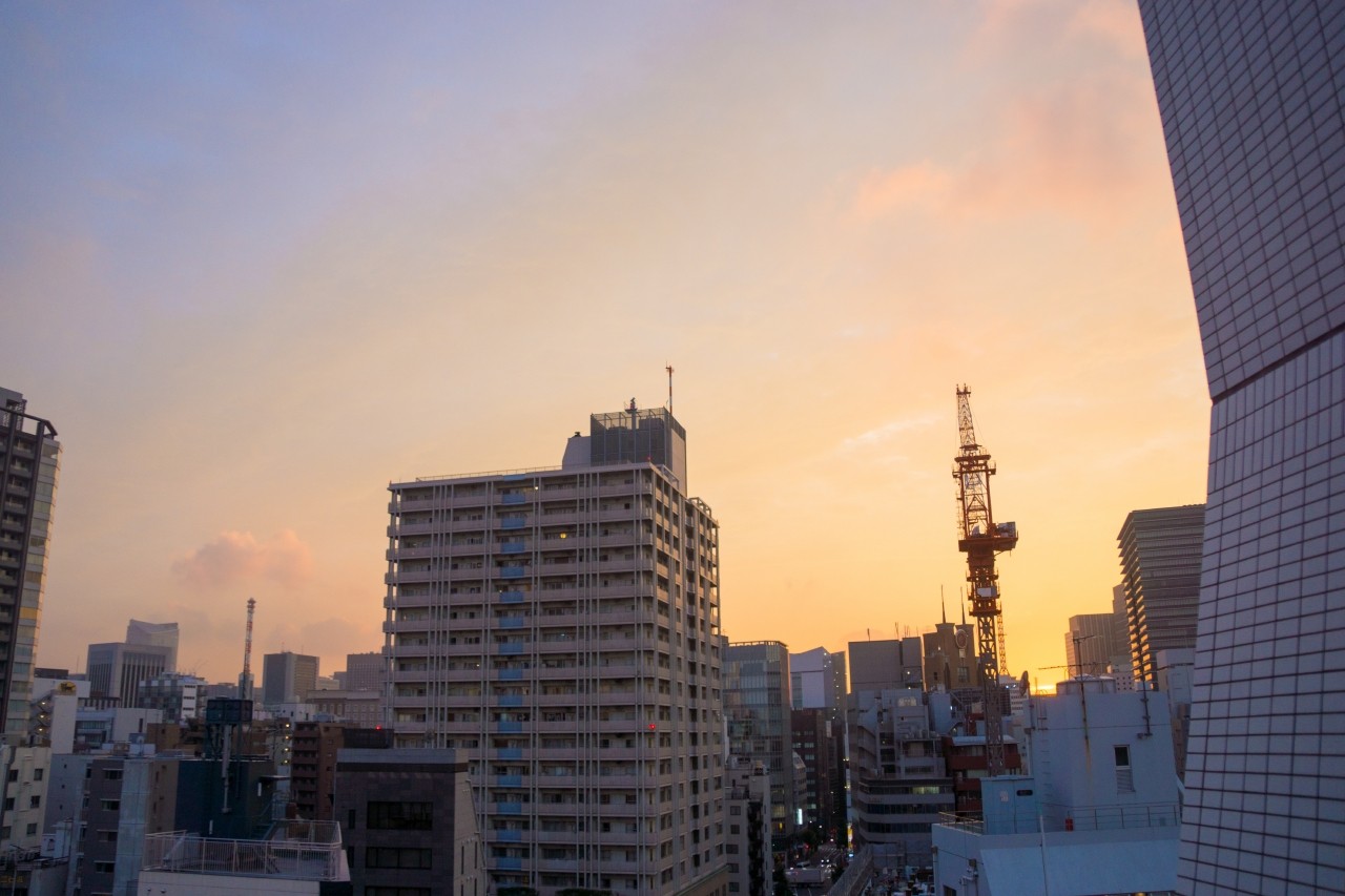隙間には夕焼けもキレイな此所、銀座界隈。。