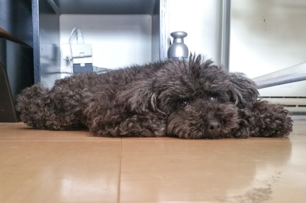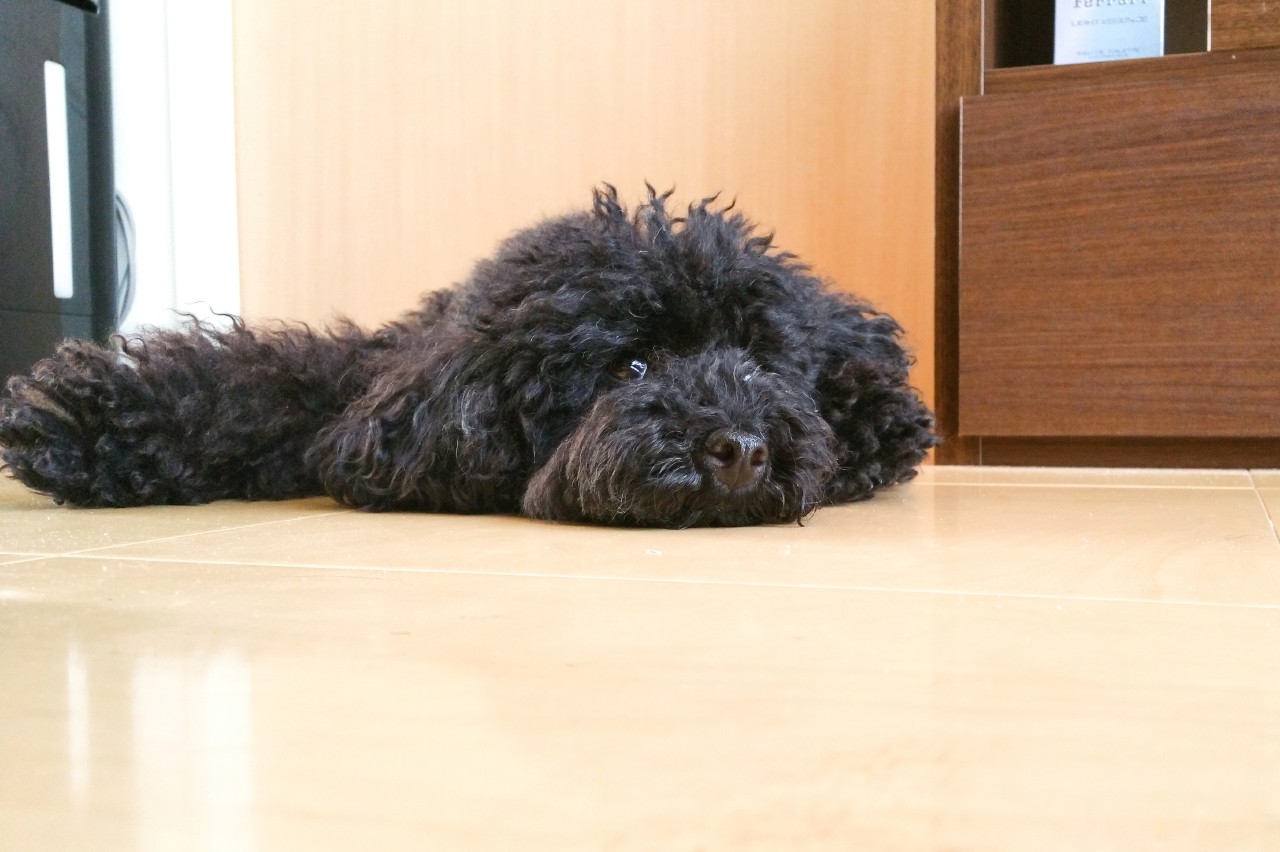 リリーは部屋の中で一番ちべたく、涼しんで過ごせる場所にぺったり這って日中を過ごしてますぅ~。。