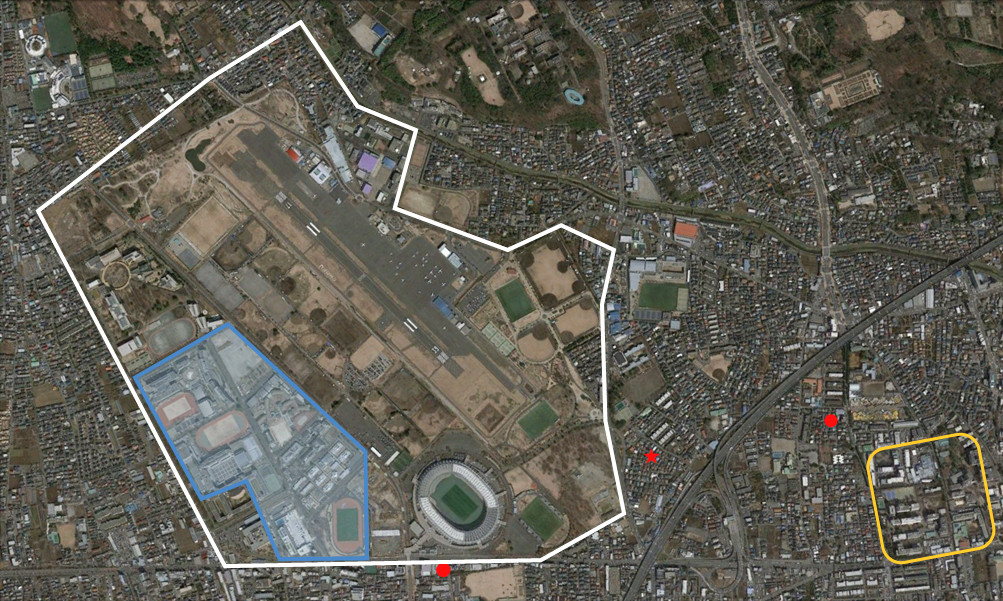 白枠は飛行場の外周に当たりぃ~の。。当時のpapaは毎日ここを1~2周ジョギングする脳みそ体育会系時代を過ごしてたわけで。