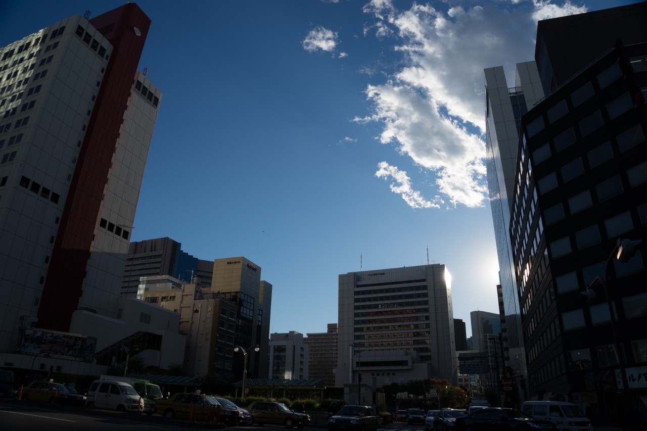 雲と空と都会の寒々としたビルとのバランスがなんとも良い感じ。。