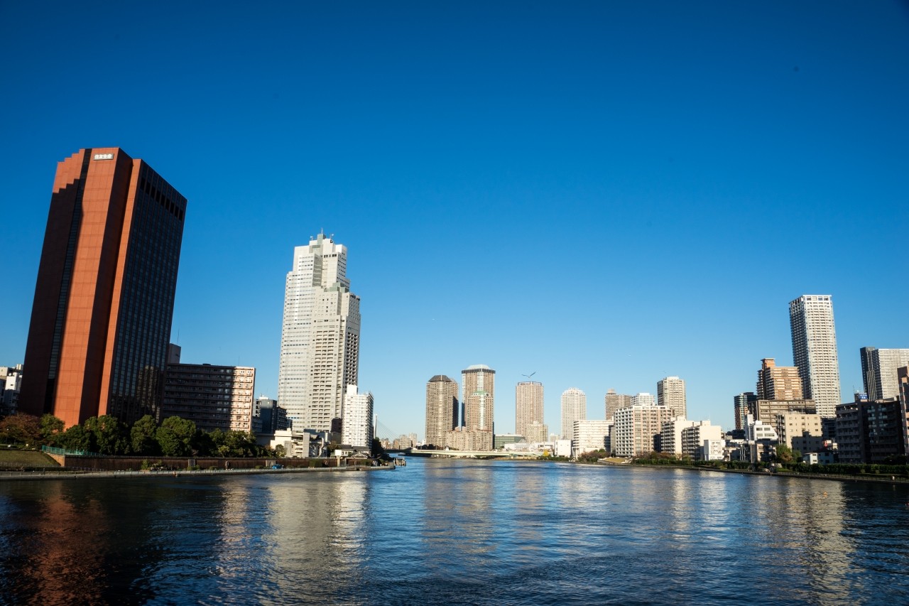 勝ち鬨橋を渡った向こう側の隅田川テラスへ向かうです。。