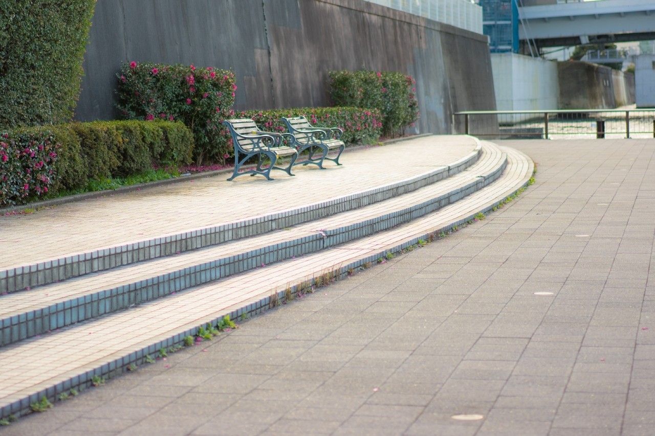 そっち側のテラスを歩くです。