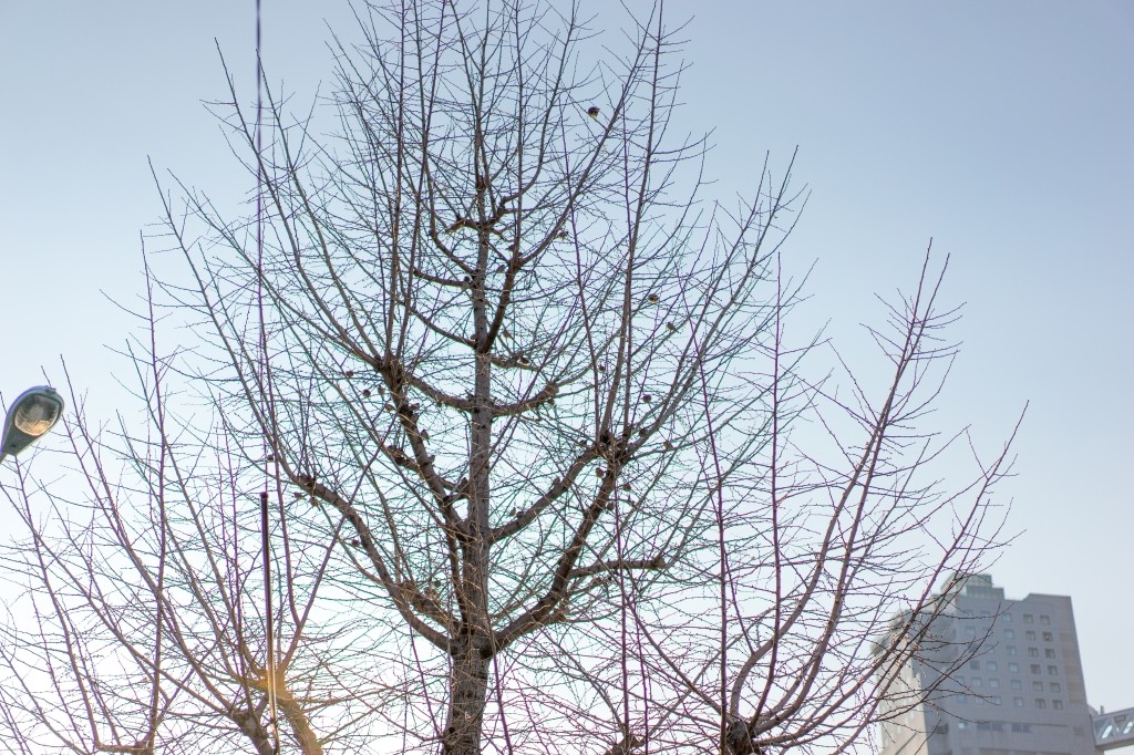 葉っぱが全部落ちちゃってる木にスズメちゃんがいっぱいとまってたっす。。