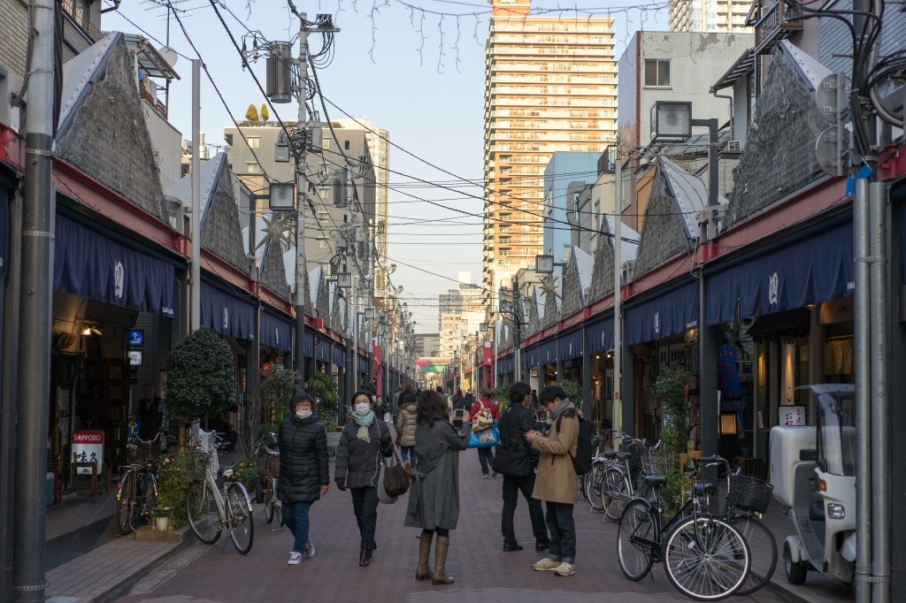 月島のどんな~もぉ~んじゃ!通りをスルリ抜けぇ~♪