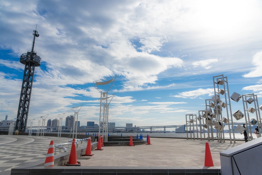 仕方がないので、風よけ?がある??晴海埠頭でボール遊びするっす!!